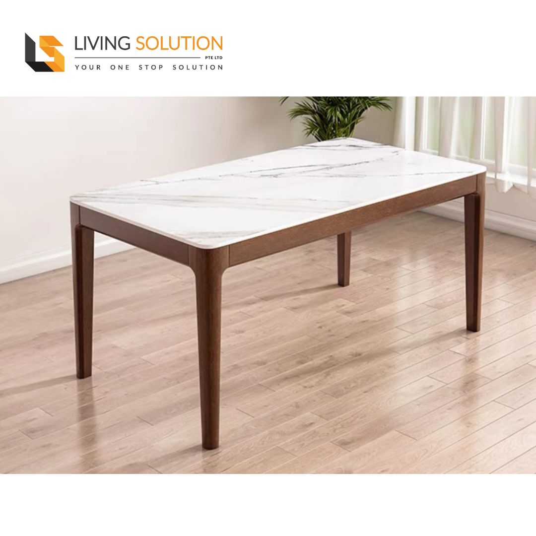 Noya Solid Rubber Wood Dining Table in Walnut / Original